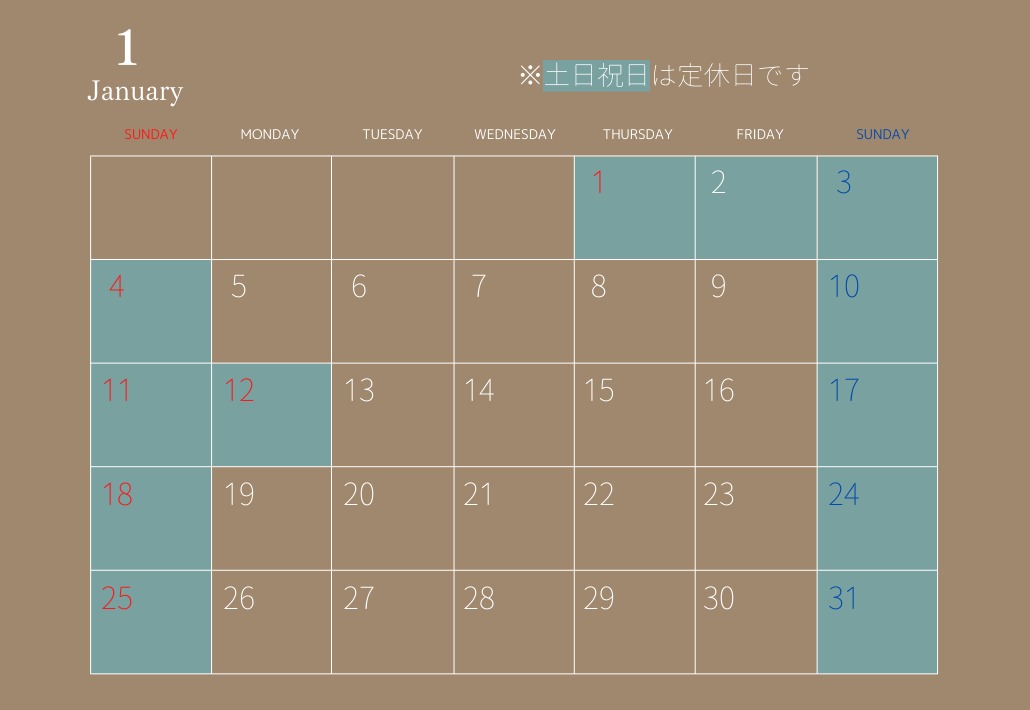 年末年始休業期間:12月27日(土)~1月4日(日)