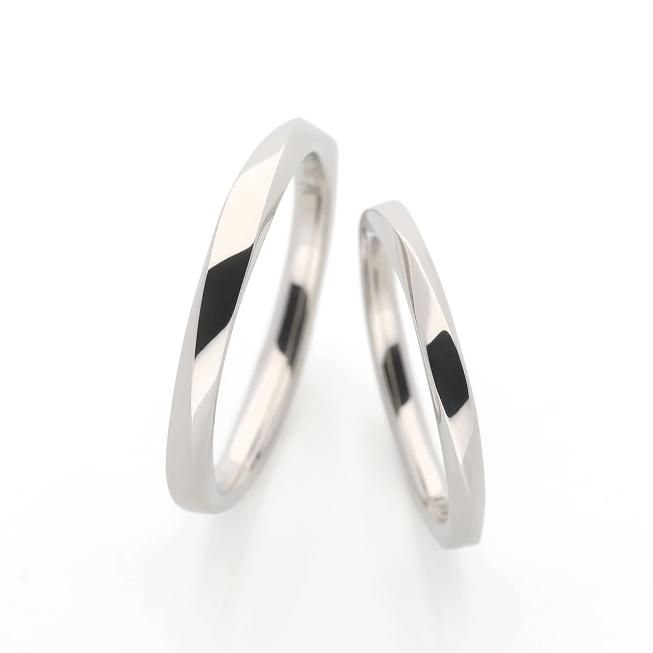 「Quatre(カトル)」はリング全体に四つの面を持たせたデザインで、エッジの効いた印象でありながら、どの角度から見ても表情のバランスが整うよう設計されているリングです。