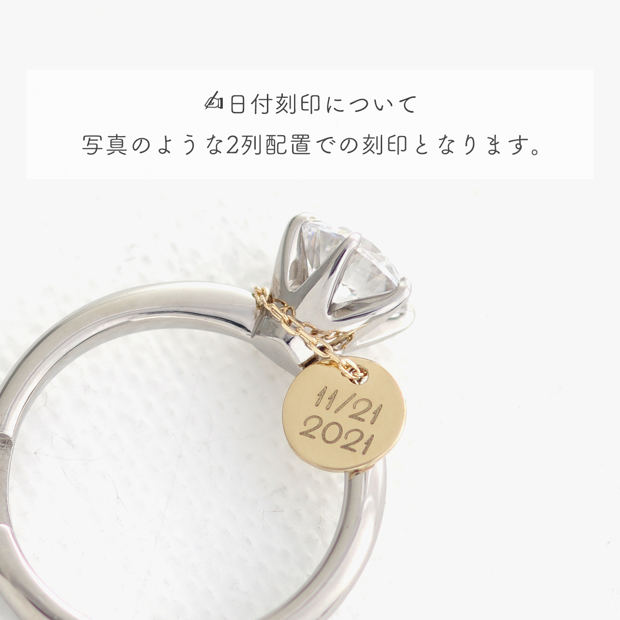 リング付属のK18製プレートは『無地』または『アルファベット(A~Z)』の刻印か『日付』の刻印のいずれか1つをご選択いただけます。