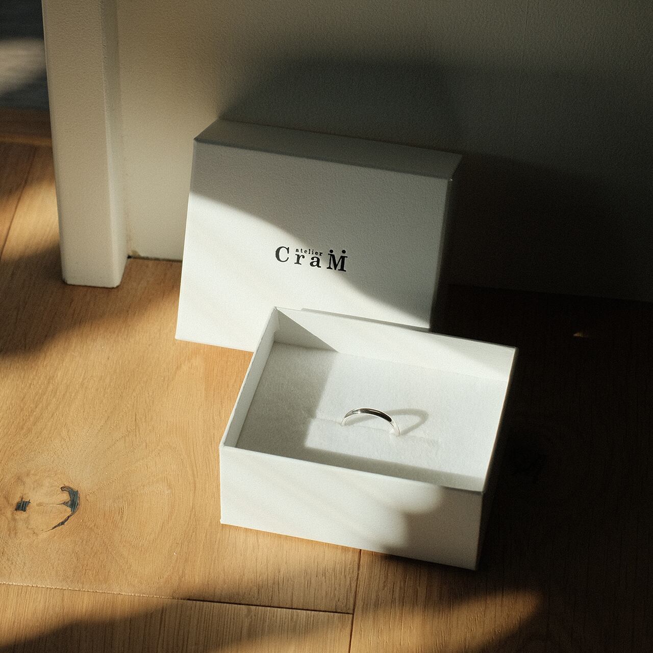 アトリエクラムのロゴをレタープレスしたオリジナルのペーパーボックスです。