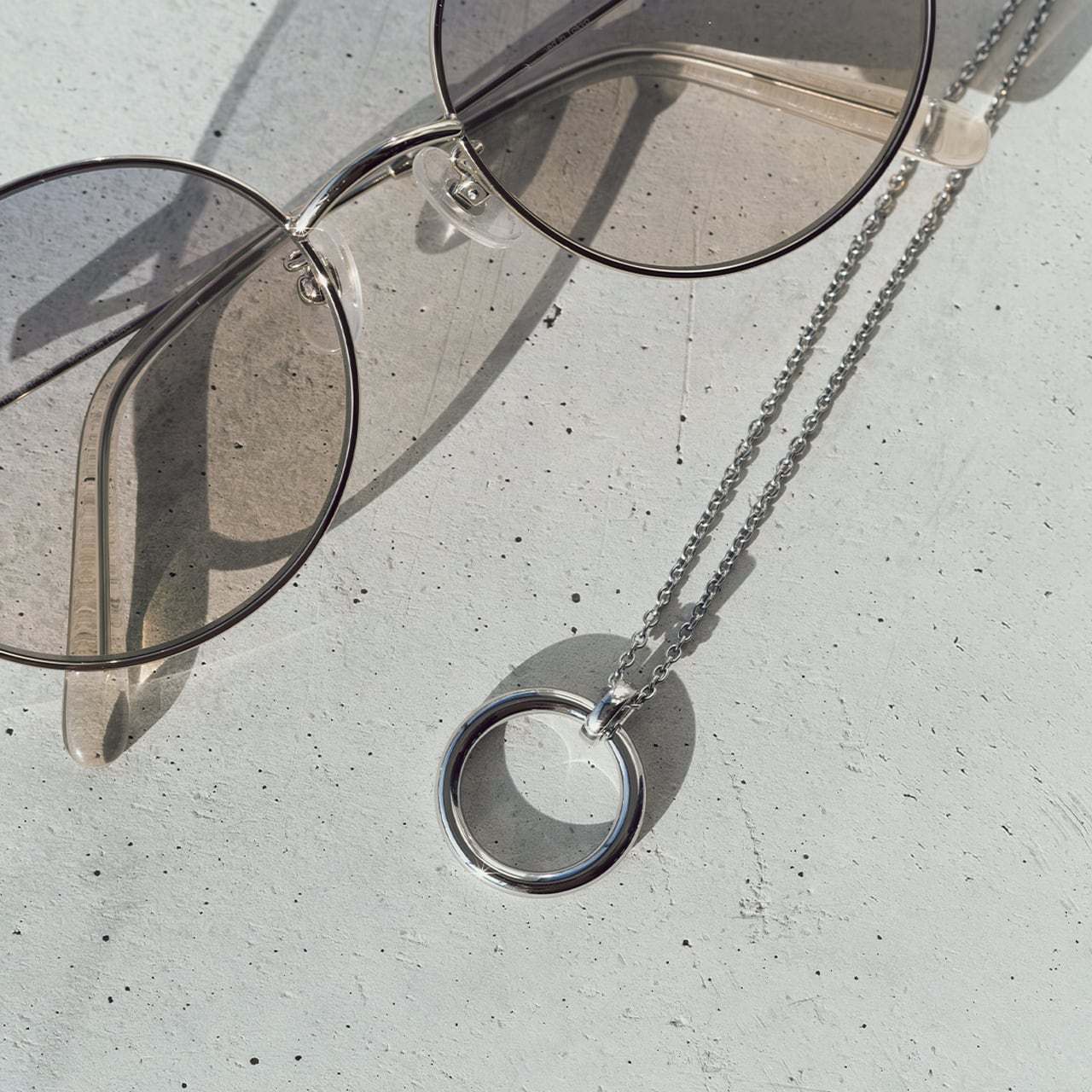 装飾のないシンプルなデザインの為、サングラス・眼鏡をかけていない状態でも、ペンダントトップネックレスとしてご利用いただけます。